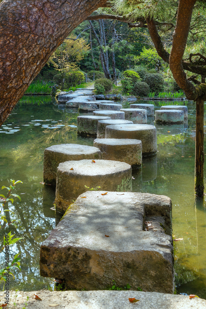 Heian Jingu Garden is a garden with a variety of plants, ponds and buildings and weeping cherry trees, making it's one of the best cherry blossom spots in Kyoto