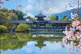 Heian Jingu Garden is a garden with a variety of plants, ponds and buildings and weeping cherry trees, making it's one of the best cherry blossom spots in Kyoto