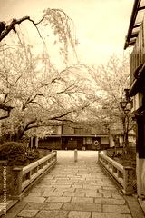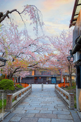 Tatsumi bashi bridge over Shirakawa river in Gion district, Kyoto, Japan