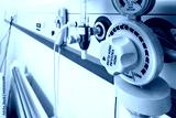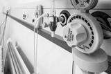 Bed head unit in a hospital ward showing a suction vacuum pressure gauge, an oxygen supply and a nurses call bell.