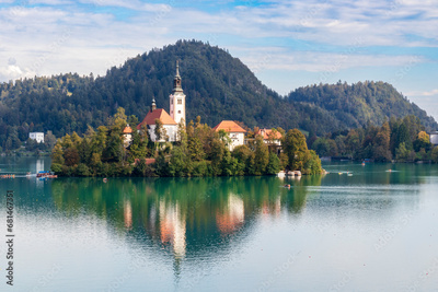 Bled, Slovenia. 09 30 2023. Island on lake Bled with old church