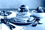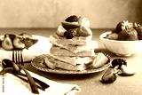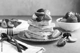 Waffles and Strawberries stacked on a plate. Belgian homemade waffles