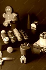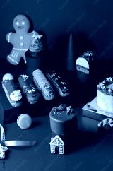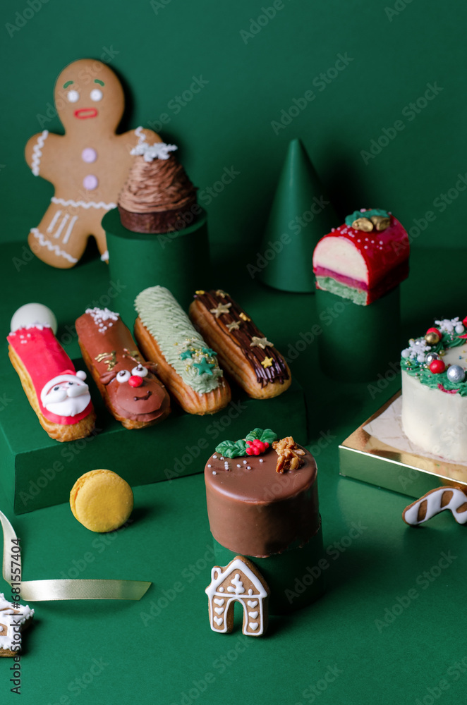 Christmas Pastry, Various Festive Desserts on Dark Green Background