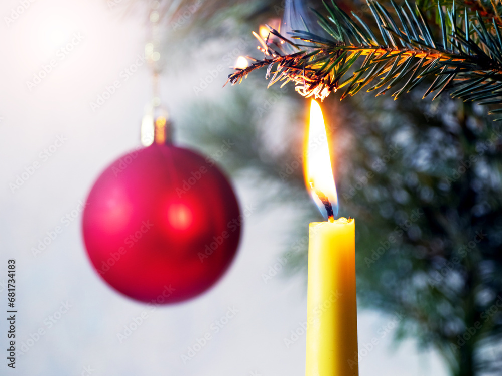 A branch of a Christmas tree caught fire from a candle, a fire due to non-compliance with safety rules
