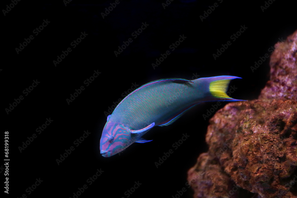 Moon wrasse on a black background.
