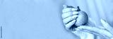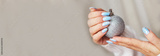 Cozy nails with winter manicure with snowflakes. womans hands holding christmas toy ball