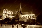 Notre Dame de Paris cathedral at night, side view