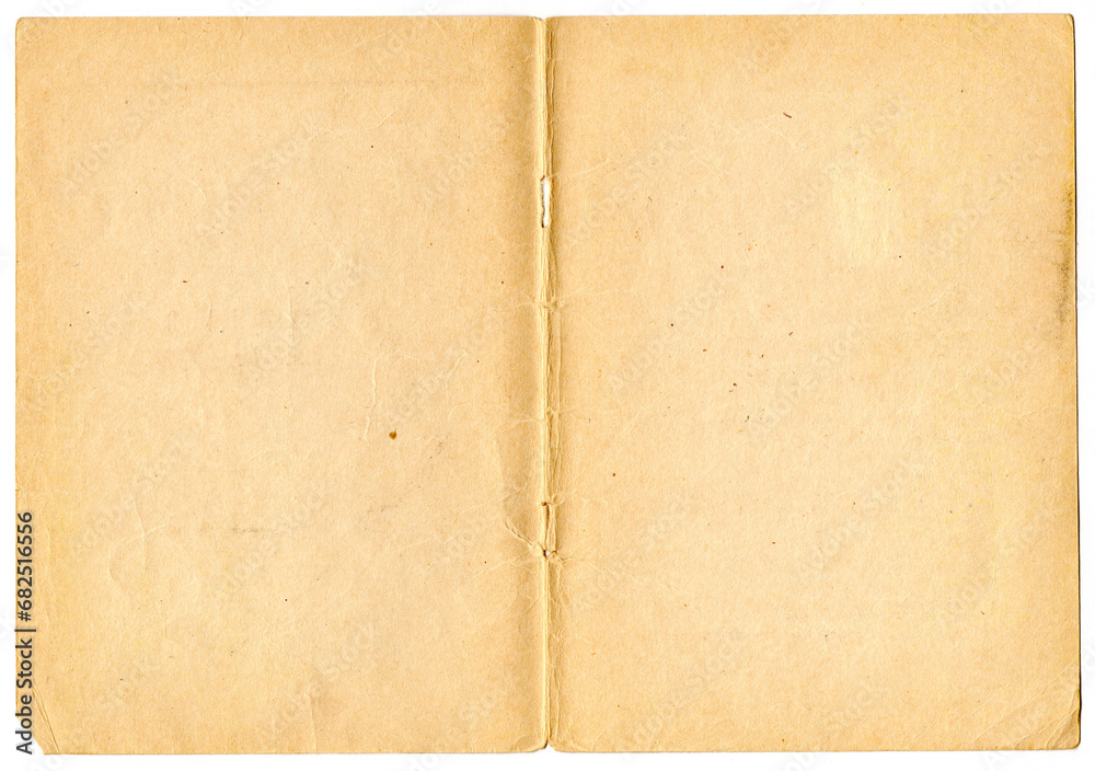 Stark vergilbte gealterte Doppelseite mit Klammerheftung