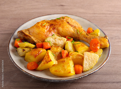 chicken leg with roast vegetables