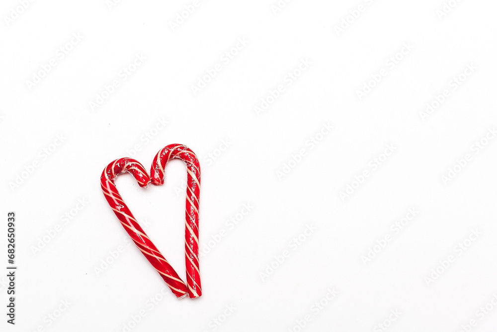 Christmas candy-Santa's striped cane on a white background, isolate. Close up. Christmas, new year. Decoration, sweetness, candy, treats for children.