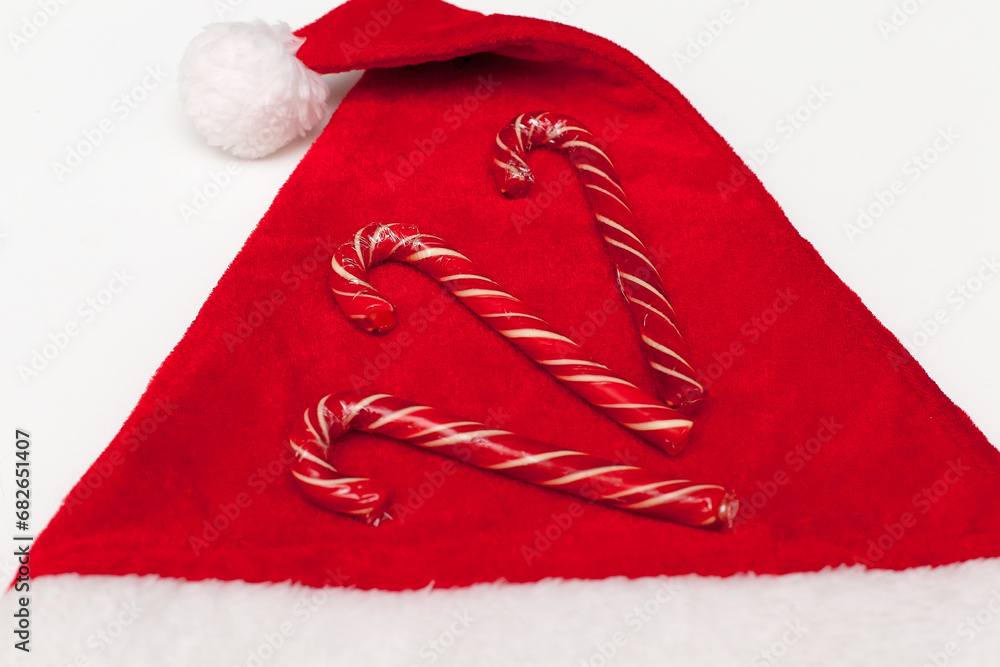 Christmas candy-Santa's striped cane on a white background, isolate. Close up. Christmas, new year. Decoration, sweetness, candy, treats for children.