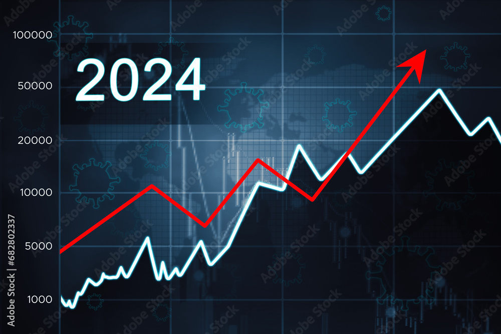 increase arrow graph corporate future business goals on year 2024, planning and strategy, business development concept