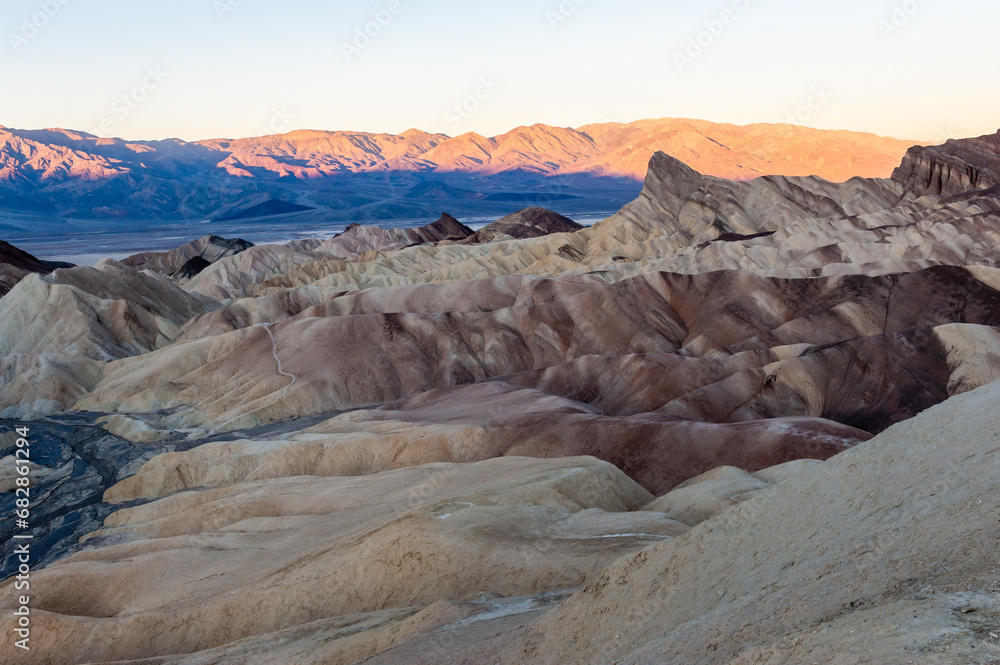 An early morning sunrise at Zabriskie Point, Death Valley, in late December.