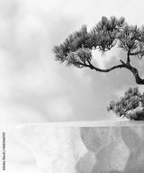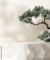 Modern white rock stone side table podium, tree in sunlight on beige room background. Luxury cosmetic, skincare, beauty, body, hair care, treatment, fashion product display background 3D