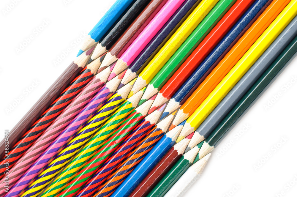 Colored pencils on white background