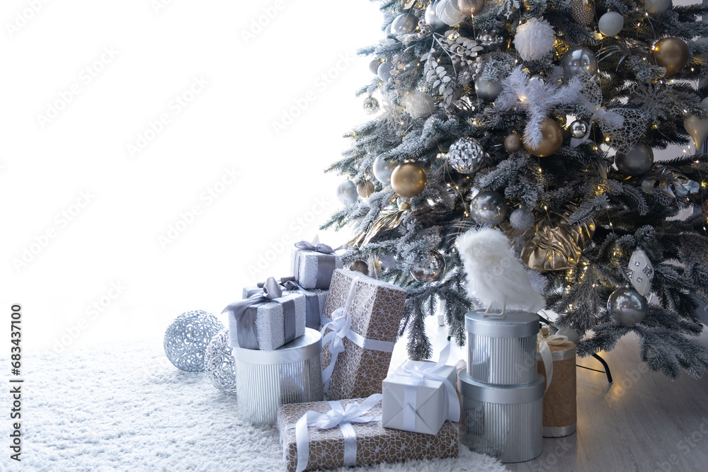 Beautiful Christmas tree indoors with white space for text