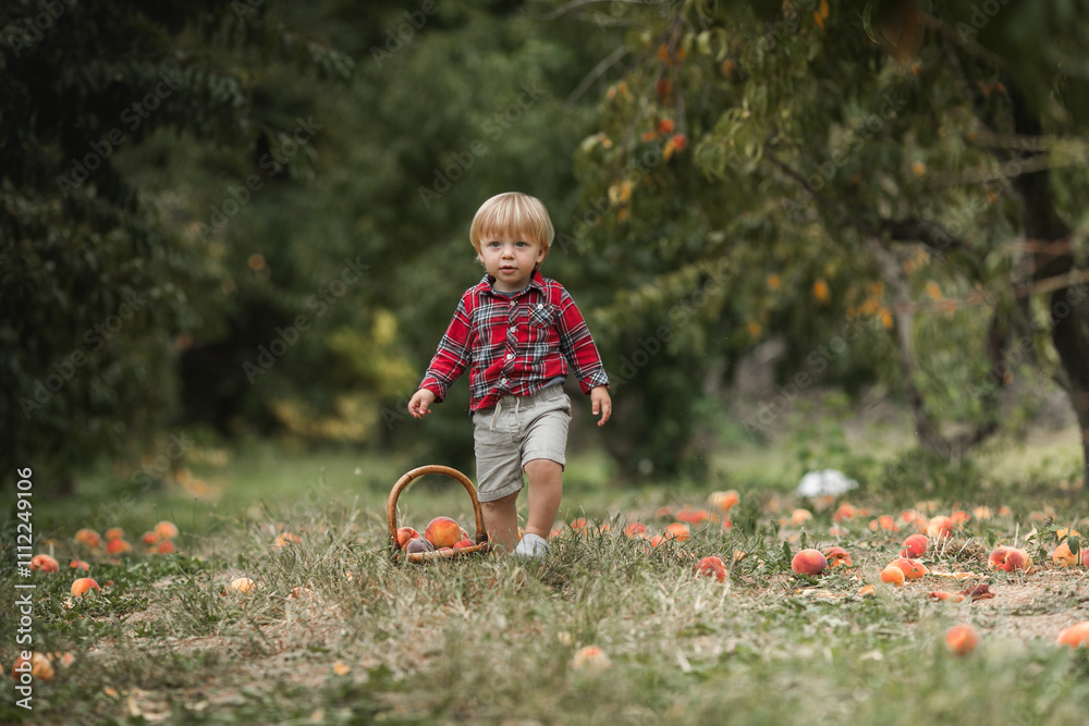 A beautiful little toddler girl in a white fluffy dress walks in a flower garden, a bright concept of holiday and summer, a very active action