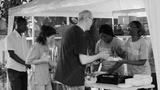 At homeless shelter, warm and welcoming female volunteers cheerfully provide the less fortunate with complimentary meals. Poor and needy individuals receives food contribution from hunger relief team.
