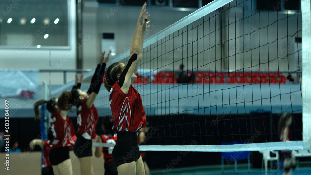 young woman volleyball player at match