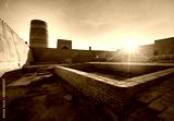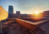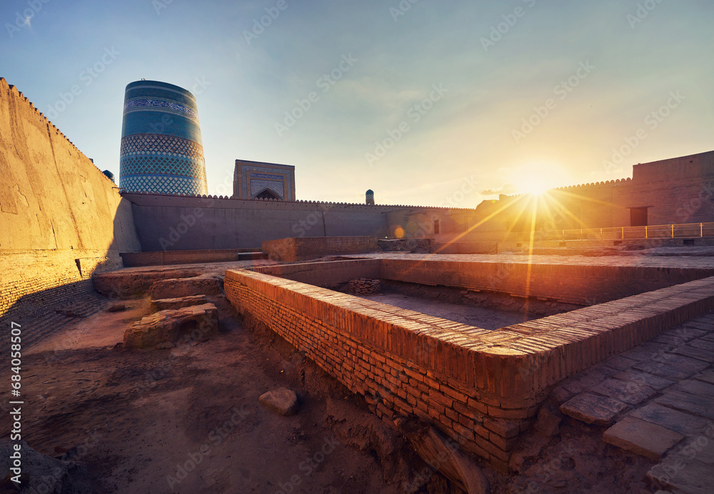 Ruins near Kalta Minor minaret in ancient city at Khiva in Uzbekistan