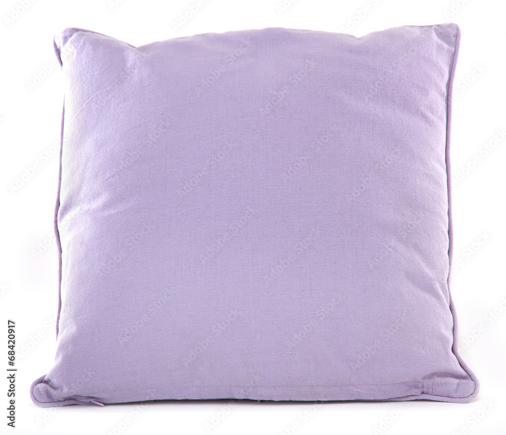 One purple pillow isolated on white