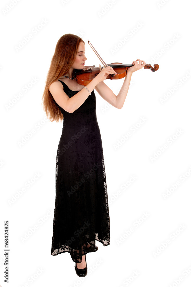 Woman standing with violin.