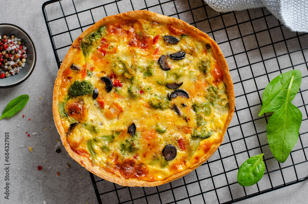 Quiche with Vegetables, Homemade Open Pie, Savory Tart
