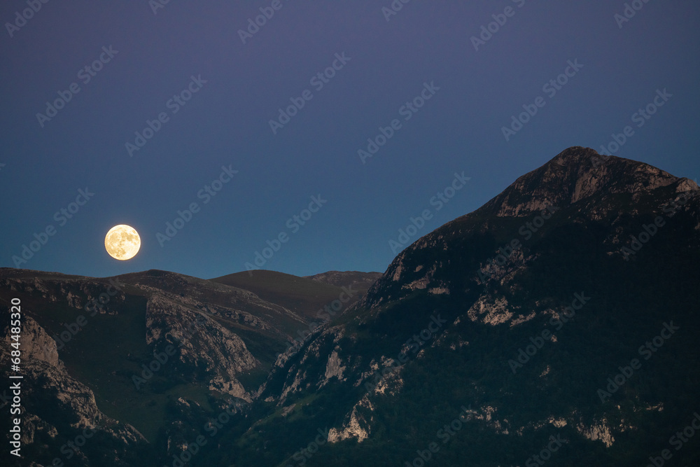 Full Moon rising behind Txindoki mountain, Guipuzcoa in Basque Country, Spain