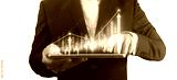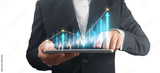 Businessman plan graph growth and increase of chart positive indicators ,tablet in hand
