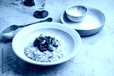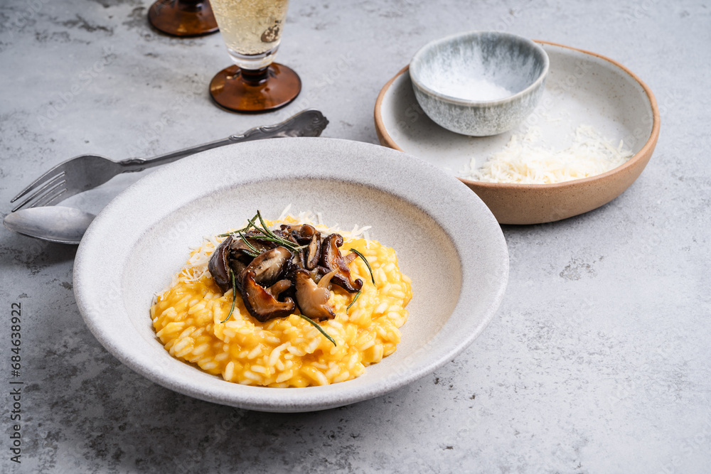 Pumpkin risotto with mushrooms, Parmesan cheese and herbs