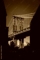 New York City Brooklyn old buildings and bridge in Dumbo, stylized, vintage