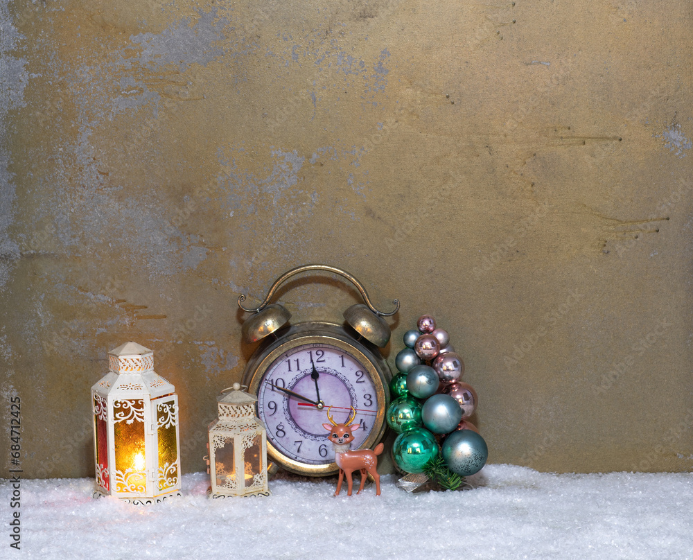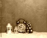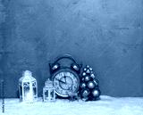 Christmas alarm clock on wooden table