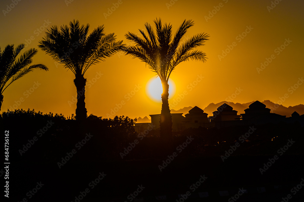 Palm trees against the sunset at Sharm El Sheikh, Egypt