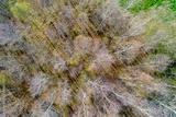 zenithal aerial drone view of a deciduous forest in autumn