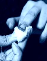 bloody finger with cutton