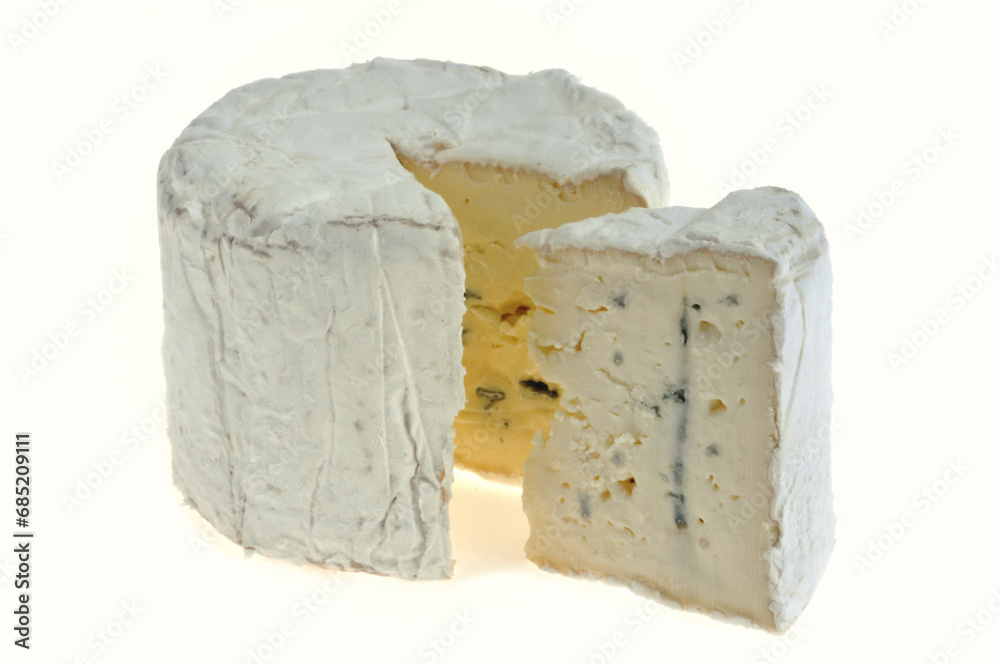 Fromage bleu en gros plan sur fond blanc