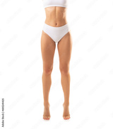 Perfect body of young and beautiful woman in swimsuit isolated on white. Weight loss, diet, sport and fitness concepts.