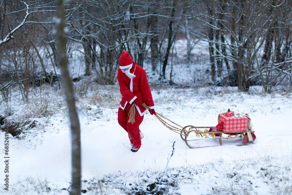 Tired Santa Claus on Christmas Eve While Delivering in remote locations