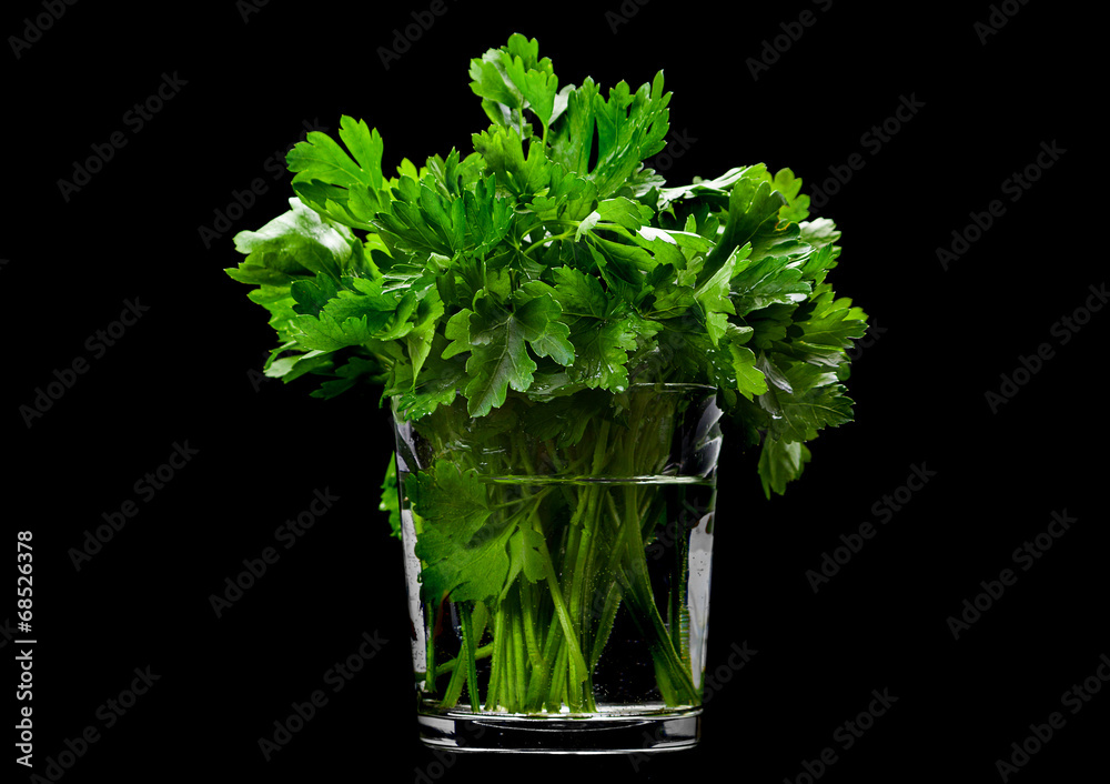 Parsley aromatic herb on black