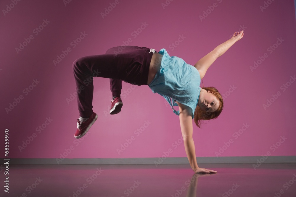 Pretty break dancer doing a handstand