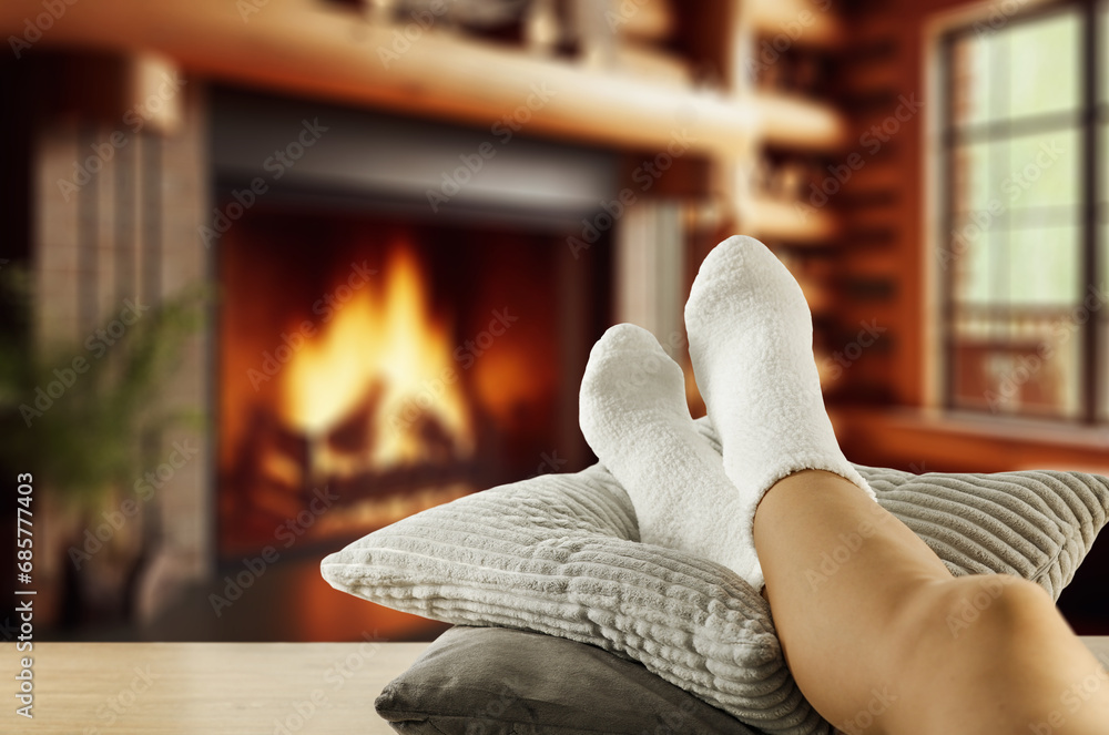 Woman legs and warm socks. Free spce for your decoration.