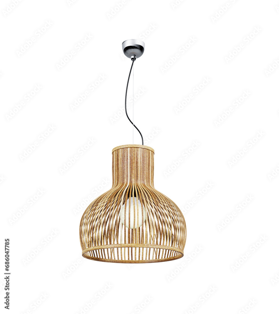 Decorative of bamboo ceiling lamp. Wicker shade lamp or Rattan Ceiling lamp with vintage electric light bulb. Png transparency