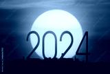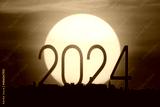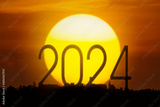 Silhouette of new year number 2024 with a huge sun background