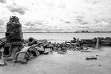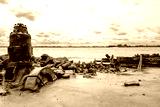 View of the Falkensteiner Ufer and the Polstjernan shipwreck. Historical sight on the Elbe near Hamburg.