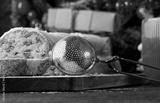 Christmas pastries stollen sprinkled with powdered sugar on the table, festive dessert