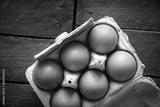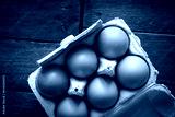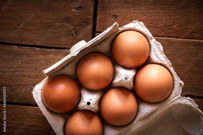 Egg box on a rustic wooden board
