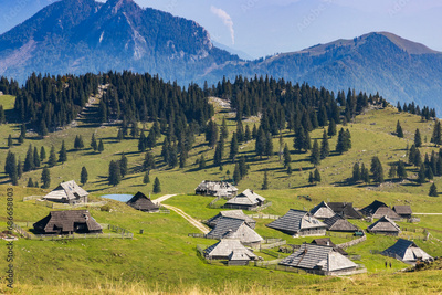 Velika Planina. 10-02-2023. Velika Planina village. Old shepered village with wooden houses in Kamik Alps.