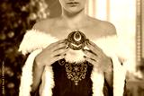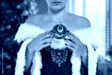 Santa Claus woman on white background. Free space for your decoration. Slim young woman and red dress.