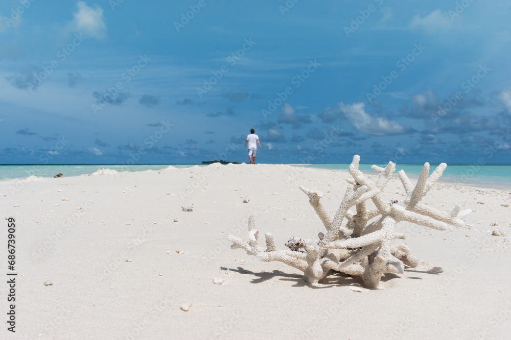 Discovery travel in Maldives: Dried Coral Structure on a Sandbank in Indian Ocean Sandbank with beautiful lagoon surrounding it