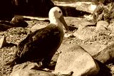 Closeup shot of the endangered Galapagos Albatross (Phoebastria irrorata) aka a Waved Albatross on Galapagos, Ecuador